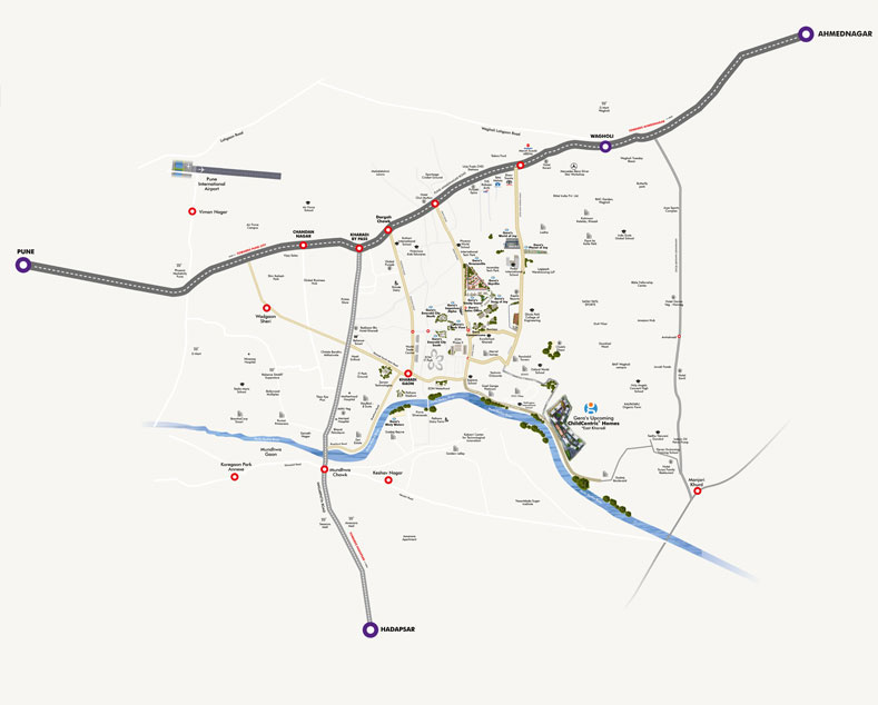 Gera's Island of Joy is the newest addition to Gera's ChildCentric® Homes offering 2, 3 and 4 BHK flats and duplexes in East Kharadi, Pune. It spans 12.5 acres and has three clubhouses, encompassing a combined area of over 40,000 square feet and over 4 acres of open spaces. With the first-ever private Go-Kart racing track in a residential premises along with an elevated wave pool and a bowling alley, experience a world of fun activities right at your doorstep. This is a sector development in an integrated township project comprising 9 towers ranging from 30 to 32 storeys, making it Gera's most premium ChildCentric® Homes project to date. The development will offer 2, 3 & 4 BHK apartments and duplexes in East Kharadi.